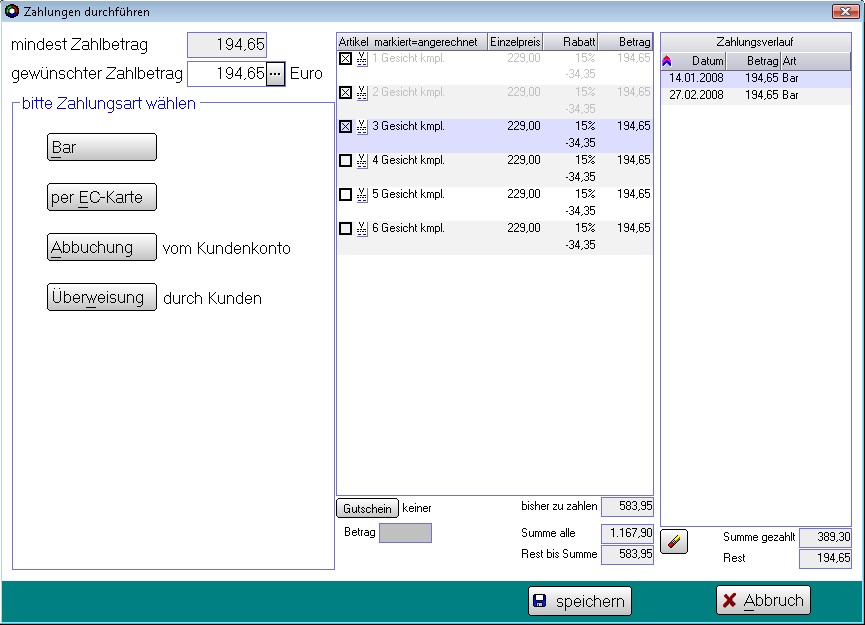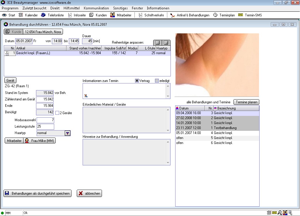 - Einstellungen der Geräte (max 2. pro Behandlung)