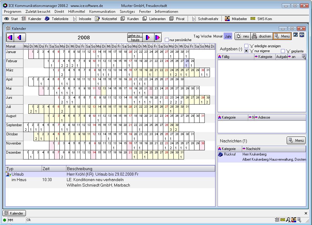 Im Kalender sehen Sie nicht nur, wer wann und mit wem