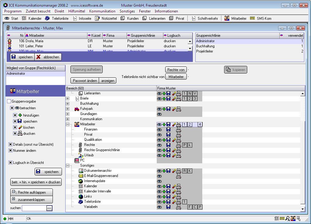 Rechte für jeden einzelnen Mitarbeiter festlegen.
