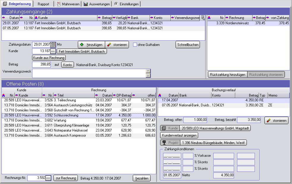 In der Belegerfassung werden Zahlungseingänge Ihrer Kunden