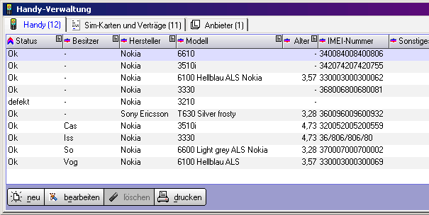 können Sie leicht und übersichtlich Ihre Handys und