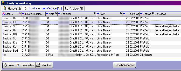 Handyverträge verwalten. |