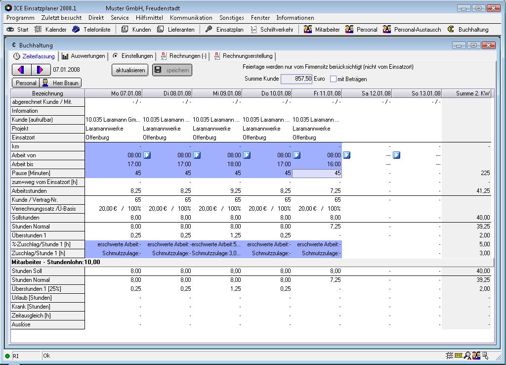 Mitarbeitervertragsdaten werden sämtliche Stunden und